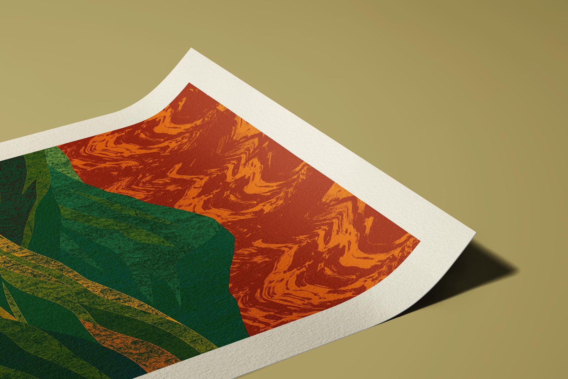 Crimson Ridge: Abstract Mountain Wall Art Print in Pine, Teal & Rust.